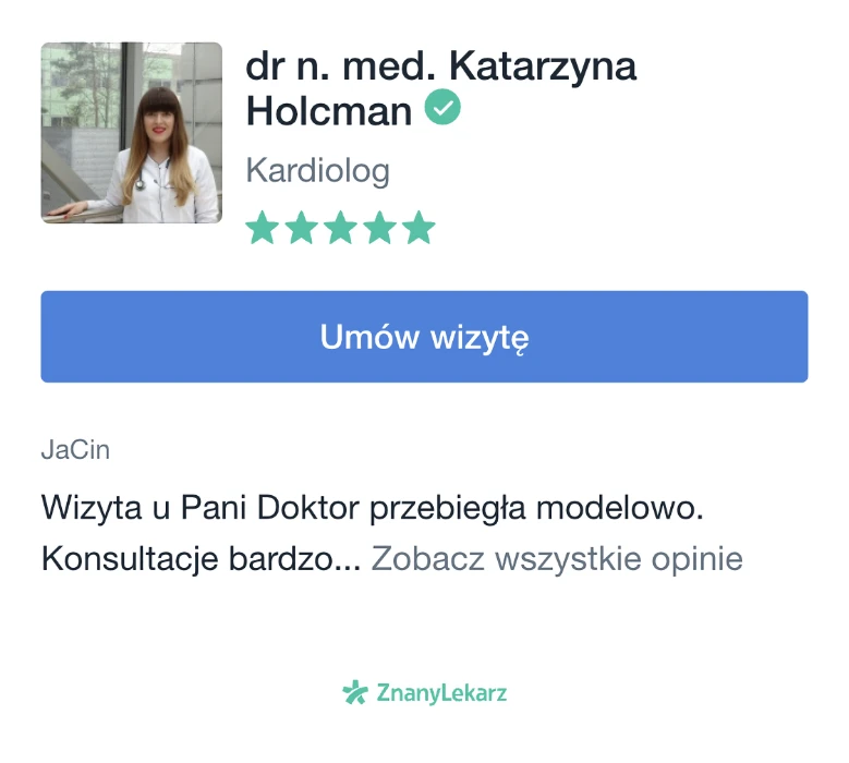Dr n. med. Katarzyna Holcman – lekarz specjalista kardiolog dorosłych: | |