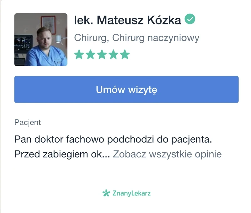 Lekarz Mateusz Kózka – specjalista chirurg naczyniowy dorosłych: | |